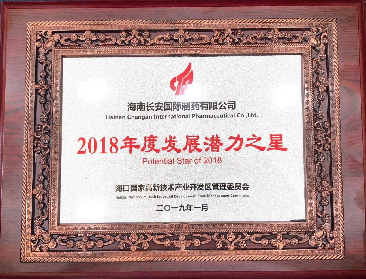 海南長安國際制藥有限公司榮獲“2018年工業發展十強”“2018年發展潛力之星”