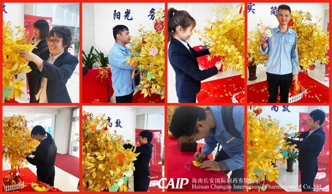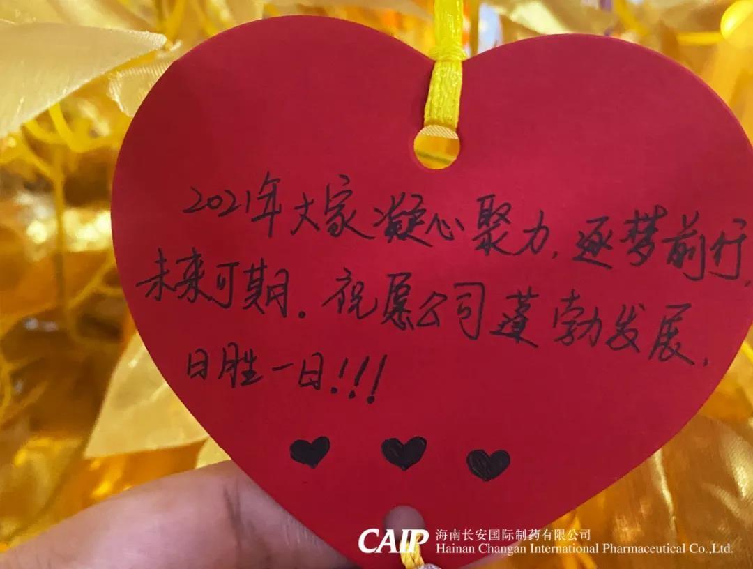 許下心愿的同事們臉上洋溢著快樂的微笑,一張張的心型的祝福卡片被掛在金色的許愿樹上,這些祝福中蘊含著長安人對辭別舊歲喜迎新年的美好愿景和內心最深處的愛意,同時也包括了同事們對長安制藥的真切祝福,對同事的美好祝愿,對個人未來的美好憧憬。