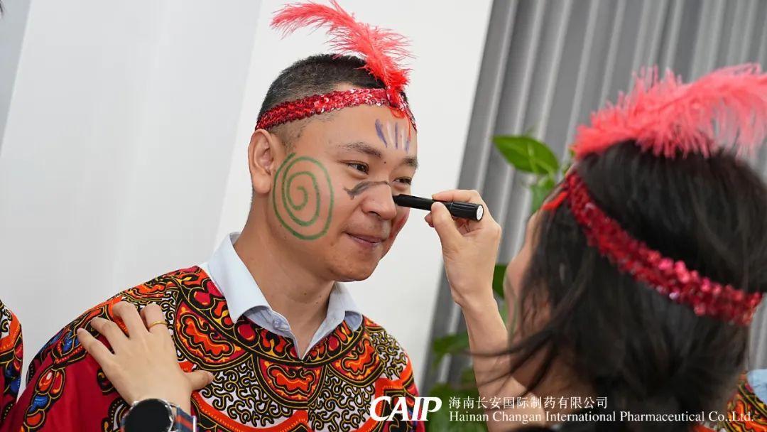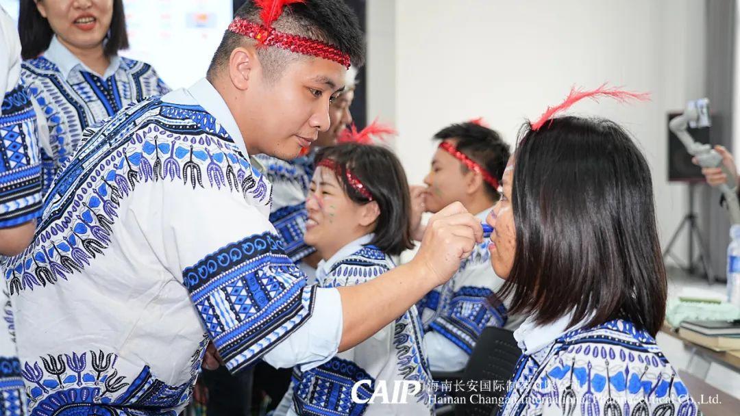 緊接著,全體骨干分為四個部落,選舉酋長、王妃和舞姬,開啟族內建設,取族名、立口號、擺隊形,并換上非洲當地的裝扮——頭戴羽冠、特色服飾,用特殊的油彩繪制出專屬部落五彩斑斕的精致臉譜。