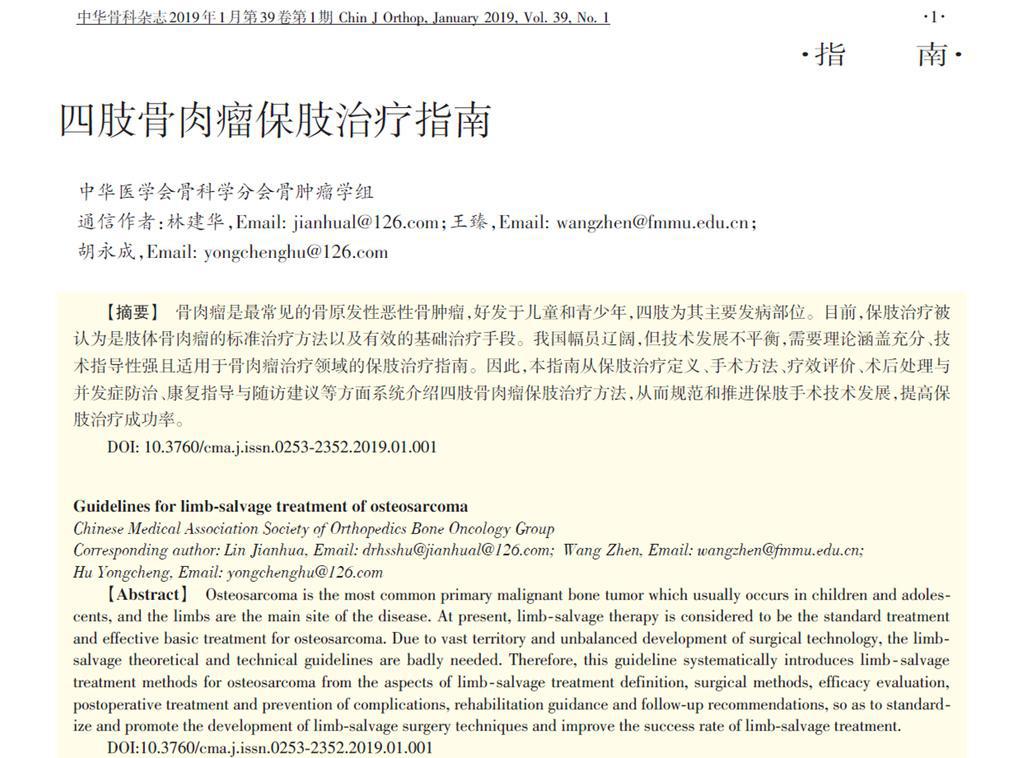 洛鉑作為一線化療方案藥物被“四肢骨肉瘤保肢治療指南”推薦